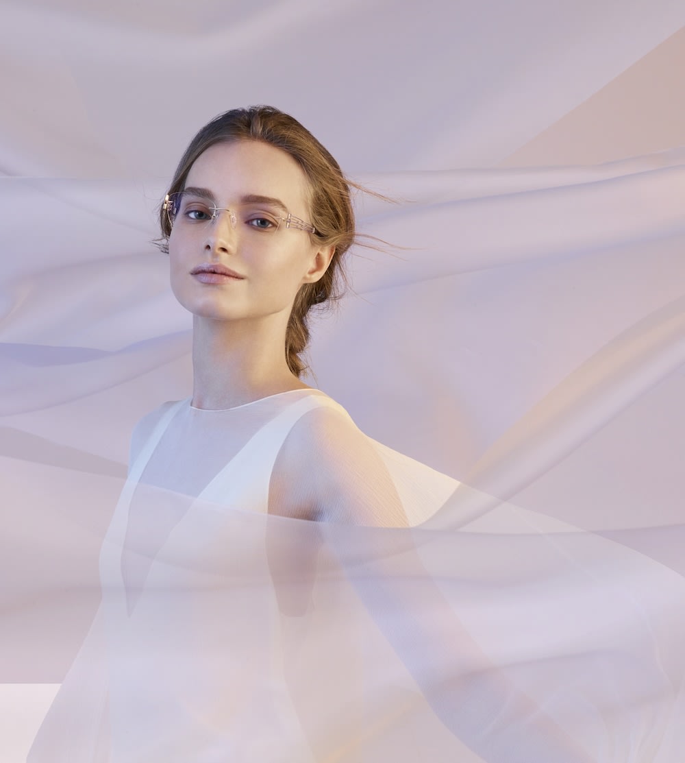 The Menuet (XL2189) is a semi-rimless classic square style with two twisting lines for the temples, designed to evoke a couple “dancing gracefully on ‘Menuet’ melody”—available in gray, teal, and rose gold.