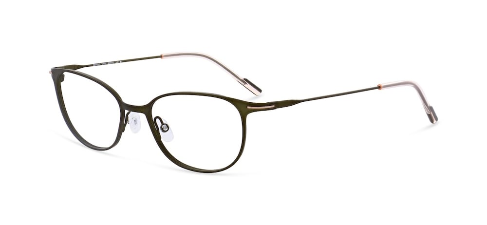 This optical style is available in dark purple/gray, olive green/pink, cocoa brown/orange, and crimson red/gold.