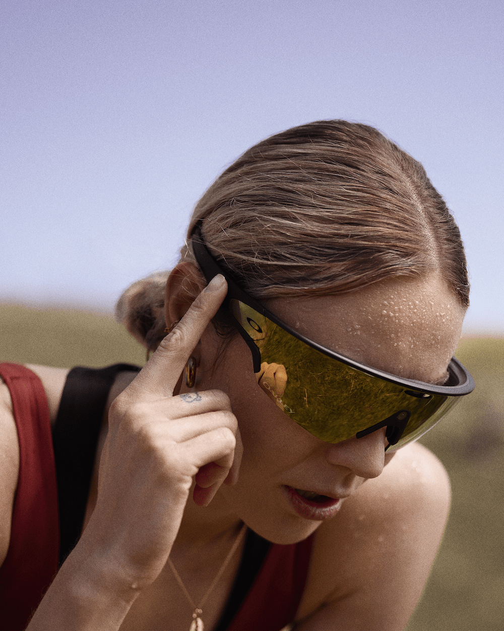 Pictured here, the Oakley Meta Vanguard is positioned as the brand’s first “Athletic Intelligence” eyewear, featuring Oakley’s Prizm lenses, swappable lenses, open-ear audio, and extended battery life designed for fitness and performance.