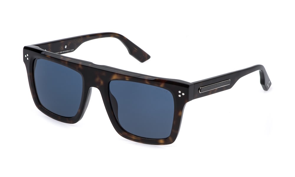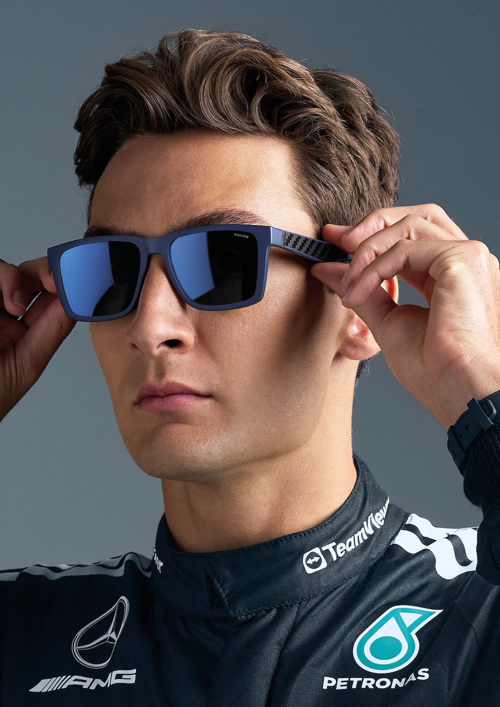Police partners with the Mercedes-AMG Petronas Formula One Team to release a capsule eyewear collection from De Rigo—four sun styles, each available in multiple colorways, and an exclusive e-commerce edition. The frames feature joint branding from Police and Mercedes-AMG Petronas, incorporating design elements and colors associated with the Formula One team.