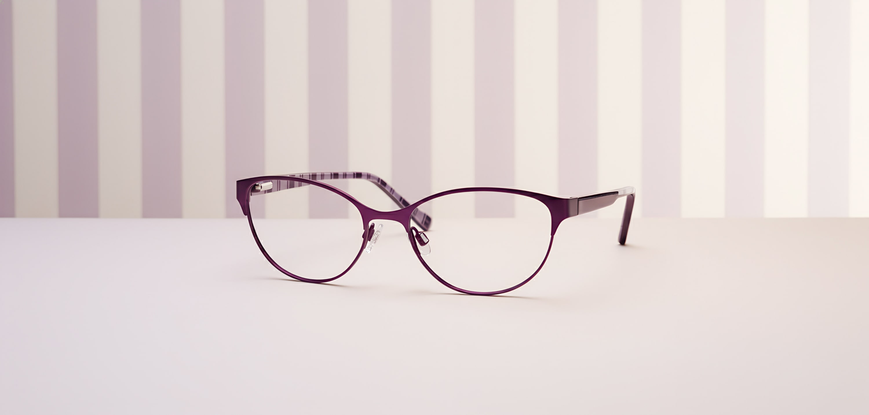 Pictured above, the Jane is an almond-shaped metal and acetate combination design, featuring a vertical stripe pattern on the inner temples—available in aubergine, black, and blue sky.