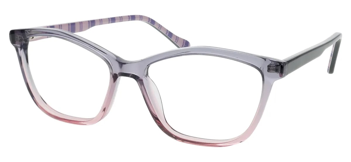 The Fanny is a geometric acetate design featuring a vertical stripe pattern along the inner temples—available in green slate, grey blush fade, and taupe.