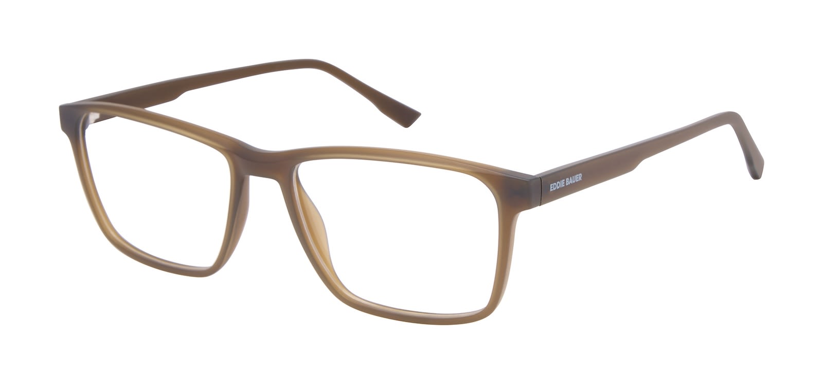 The EB32107 is an oversized square frame with sculpted temple lines—available in frosted blue, rich brown, and classic solid black.