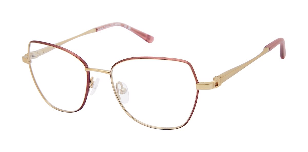 The TYATP7150, pictured above, is a stainless steel optical frame featuring a cat-eye silhouette—available in matte mauve/light gold, matte future dusk/rose gold, and matte navy/light bronze.