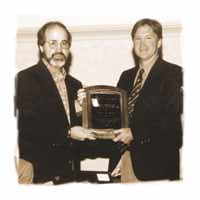 Robert B. Sanet, O.D., left, presents Carl Hillier, O.D., the AOA Sports Vision O.D. of the Year award. |