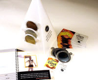 Lens Coating Demonstrator: This 24-place kit includes cosmetic, sun tint, and mirrored coatings that can be applied on conventional glass or plastic as well as high-index and polycarbonate lenses. Included is a detailed description of each coating along with the benefits and lens material availability. $65. |