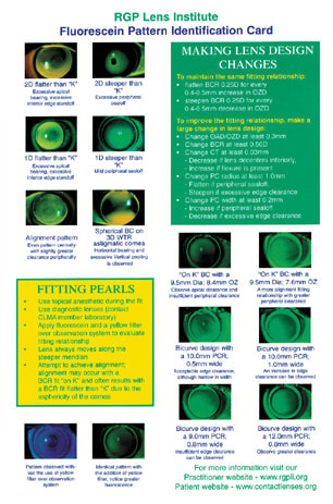 A helpful reference card is available from the RGP Lens Institute for fitting GP lenses |