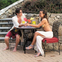 THE LOOK OF LEISURE On Sergio: Ocean Drive frame style Vega for MOJA Design. Robe by FAL. Swimsuit by Jean Paul Gautier. On Krista: Thalia frame style Catalina for Kenmark. Swimsuit by J.Lo. Pants by FAL |