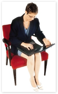 Laptop solution: Much of the ergonomic advice regarding monitor and keyboard positioning goes out the window when a laptop is used. As a result, CVS experts advise extended computer use is best limited to desktop computers. If a laptop is the only option, consider using the laptop with an optional monitor on a desk. Laptops do offer one advantage. They use an LCD display that eliminates the flicker that is typical of VDT monitors