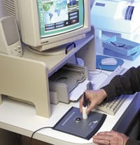 The LP works through the operator, creating a manual trace of the lens or pattern with a high-resolution digital pad using an electronic stylus. The resulting trace can be attached directly to remote entry orders created through third-party software remote packages and/or Vision Web. The LP will allow the labs to give their customers options when considering remote-site or Internet-based ordering.