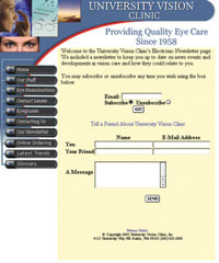 Signing up for the newsletter at Eye Associates of New Mexico (www.eyenm.com/newsletter_03.html), for example, takes little more than typing in an E-mail address.