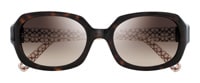 For those who want to announce their designer loyalty--but in a more understated fashion, there is an option. The big bling-bling logo at the temple is forgone in favor of a patterned logo that flashes fleetingly from beneath the frame.