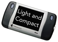 PocketViewer. The PocketViewer measures 5.6" x 3.4" x 1.4", weighs 10 ounces, and it comes complete with battery charger and carrying case. It is priced at $895. For more information, call Pulse Data HumanWare at 800-722-3393.