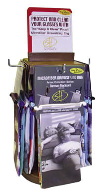 Hi-Look has combined case and cleaning cloth in the Keep it Clean Pouch, a microfiber drawstring bag with images of Hollywood legends, holiday themes, and classic artwork.