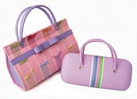 ![]() Clockwise from top: Channeling Audrey Hepburn, Jordi Labanda case with ribbon handle for Miquel-Rius USA, www.miquelrius.com, 610-954-8893; weaving a suede ribbon provides a Southwestern flair to Feducci Kona by LBI, www.LBI.biz, 800-423-5175; a quilted bag finished with a sweet bow, Sax North Atlantic Services, www.saxoptical.com, 800-223-5127; California Optical's Daisy May 177999 REFL SPR mini-bag with contrast leather-like trim, handles, and bow detail, www.californiaoptical.com, 800-523-5567; a blue silk brocade case with burgundy ribbon accent from Amy Sacks, www.amysacks.com, 877-274-0410; rosy ribbons enhance Ron's Optical Case model 207 Rose, www.ronsoptical.com, 800-247-7667; Astucci's pastel cases with bows and ribbons, www.astucci.com, 888-ASTUCCI; Cinzia's Mysterical case in orange with ribbon accents, www.cinziadesigns.com, 877-424-6942 |