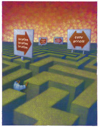 "You can't do lump-sum business on big-ticket items in a pay-per-month society," says Tim Fortner of Streamline Communications. People wake up in a house they pay for by the month; go to a closet where they have 12 times more shoes than they do eyeglasses (most of which they bought on a revolving charge account); turn on a cell phone they pay for by the month; stop and get gas that is paid for by the month, etc. But, when they come for eyewear, we say, 'I'm sorry, we don't work that way, we require payment in full.' When you get to a higher-ticket item, you have to offer flexible payments. Price is not the issue�cash is.