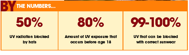 Wide-brimmed hats and caps only eliminate around 50 percent of UV radiation from reaching the eyes, so sunwear protection in addition to a chapeau is essential.