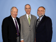 Welcoming guests to his VisionRecovery KC open house, John Metzger, OD, is flanked by OVR president Ronald W. De Long (l) and OVR�s director of education Randall T. Jose, OD