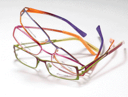 temple tip. The frames include features like unique temple designs, multi-laminate zyls, and surface treatments combined with sleek front shapes. These elements result in what Arthur Jankolovits of New York Eye calls �feminine power designs.�