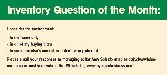 The topic of the environment is hot on everyone’s list these days, from movies to magazines and from the gas station to the shopping center. But what is optical doing about it? This is where buyers come in.