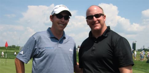 Australian golf pro Robert Allenby hits the links in his sunwear Robert Allenby, an Australian-born professional golfer who turned pro in 1981, is currently 23rd in the FedEx Cup standings, 49th in the Official World Golf Ranking, and 27th in PGA Tour money leaders. This native Aussie knows a lot about not only golf, but eye health and protection. In an exclusive interview, he shares his golf vision tips with EB. EB: Why do you choose to wear sunglasses when golfing? RA: Number one, to protect my eyes. There's glare from the sun all over the world, especially where I'm from in Australia, where we're closest to the ozone layer. A few years ago I started getting a growth in the left corner of one eye which began creeping toward my iris. When I started wearing sunwear, it stopped the growth from spreading. That's proof that protecting my eyes from the sun is a good health decision. I have great eyesight and don't need to wear glasses, but I choose to wear them to protect my eyes. EB: How has wearing sunglasses impacted your game performance and your self image? RA: Polarized lenses help take glare and shine off the green so I can see the line better. As far as my image, I'm recognized for wearing sunwear now. It's a win-win: I'm looking after my eyes and get good [visual] clarity, plus wearing sunglasses distinguishes me from other players. In the 1990s, commentators asked us not to wear sunglasses so the viewers could see the players faces and expressions. I switched to lenses with a lighter tint, but with the same lens quality and clarity. EB: What lens colors and tint densities do you wear when golfing? RA: I have several pairs of sunwear for casual wear, but on the course I wear only one pair: a polarized copper 50. The color helps me see the definition of the grass and covers all climates and light scenarios. The frames fit well, they're comfortable and they don't slide down my nose, which is important during competition. This is a personal preference; others may wear gray lenses or darker lenses, and some may change to different lenses. EB: What advice do you have for everyday golfers? RA: I 100 percent believe in wearing sunglasses and think sunwear should be mandatory equipment. UV and glare can do so much harm to eye health and performance. Your eyes are the most important thing. If you lose your eyes, you lose everything. When golfing awhile back I noticed a lot of tension in my body when I squint. Squinting creates tension in my jaws, through my neck, shoulders, and into my hands. If my eyes are relaxed from wearing sunglasses, the tension releases. I don't get headaches and I don't have tired eyes at the end of the day. So wearing sunglasses helps me be a better player. I wear sunglasses off the course, too, and my whole family wears sunglasses. It's healthy for all of us. |