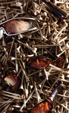 | A good golf lens is non-distorting, so it offers a consistent viewing line, for example, no gradient tints or mirrors. Lenses that are impact resistant to the highest impact standards and 100 percent UV protective are a must. Then golf frame basics: Wrap styles help protect not just the eyes, but the skin around the eyes, and offer a wider, protected view. These features appeal to eye health and golf performance needs. Most players generally fall into two categories, field and analytical. Field players tend to prefer gray lenses and analytical players usually go with a copper shade. Some pinpointed reasons to wear golf sunwear include hazards like bunkers (white, glaring sand) and water (glare), protection from dust, debris, and allergens, and plano protection and comfort for CL wearers. On a top playing level those reasons extend to sheen on grass, identifying the grain, spike marks, bugs, and "very small stuff" that can affect a shot. There's also the psychological advantage: Sunglasses are a cool fashion statement, can accessorize outfits, and may intimidate other players. External marketing to golf clubs and specifically club players can pay dividends. Golf clubs now sell sunwear in pro shops. There's no reason your practice can't approach club pros to educate them about quality sunlenses and frames. Club players are wearing and recommending sunwear. For example, Matt Killen, a professional golf instructor and swing coach, wears photochromic sunlenses and recommends them as a preferred eyewear option to professional players. "My vision plays a huge role in my career, and, for golf, the lenses provide the best possible visual performance for me in changing light conditions," he says. "Plus, I'm out in the sun all day and it's nice to know my eyes are being protected from UV and glare." If you're a golfer yourself, share golf eyewear advice with your club pro and bring options for him or her to try. Visit other golf clubs in your area to offer your services as well. OF COURSE, PALS A recent study conducted with 30 presbyopic golfers, all current PAL wearers, found that certain PALs were preferred on the golf course. Participants were asked to evaluate various aspects of play such as driving, chipping, putting, wedge shots, reading the scorecard, and walking. The double-blind study showed that PALs, with careful consideration of necessary components and proper fitting, can be an option for good golfing. "The 3M Championship tournament on the Champions Tour (seniors) is held just down the road from our practice," says Mike Stack, optician at Blaine Eye Clinic in Blaine, Minn.,