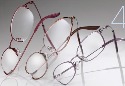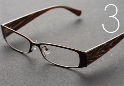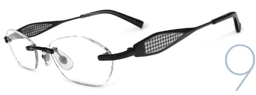 1 ProDesign has introduced a series of new frames created by cutting layers of titanium. Three masculine shapes are represented with dynamic geometric carvings throughout the temple, while four feminine shapes show off carved flowers. Both the male and female styles are available in four color options. For additional information, visit the company's website at www.prodesign-denmark.com.