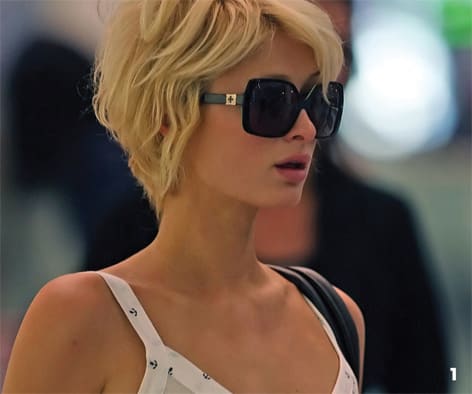 1. Heiress Paris Hilton almost looks like any other traveler carrying her pillow under one arm and a duffle bag on the other. But the blonde diva, wearing Chrome Hearts Queenie from OSA International, is surely being followed by her typical entourage of security guards and paparazzi.