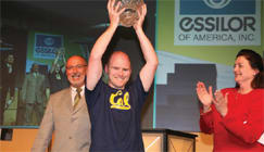 Brian Snydsman, winner of the Varilux Optometry Super bowl, accepts his trophy