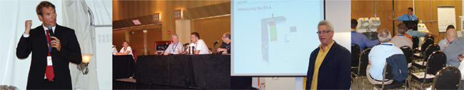 | The Satisloh users group met at the second Slugfest on June 19 through 21, hosted at the Hyatt Regency Milwaukee and Satisloh headquarters by the Swiss firm. The agenda included topics concerning transforming labs into Rx manufacturing facilities and moving lab operations into the future. Keynote speaker Jim Carroll, a leading international futurist, addressed how to effectively compete with low-cost offshore manufacturing. A panel of lab experts discussed the opportunities and challenges of automation. Lab management, machining, and technology education included hands-on operations, and attendees also enjoyed "fun breaks" to the Potawatomi Bingo Casino, golf, and Lake Michigan fishing. Photos (below, l to r): Satisloh CEO Beat Siegrist shares his passion for innovation with Slugfest attendees; Satisloh lab and manufacturer partners discuss automation pros and cons; Satisloh president Larry Clarke introduces new lab systems to Slugfest attendees; Satisloh users attend education on the latest and greatest processing technology.