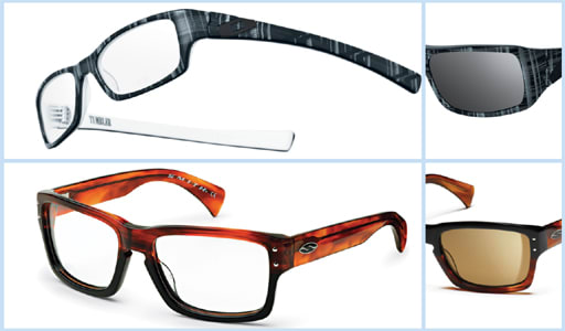 ![]() Frames shown (top): Oakley Square O styles Tumbler Rx ophthalmic and Sideways sunglass; (bottom): Smith Optics style Chemist and Chemist Sun Sports eyewear styling has been inconsistent in the past…sunwear models were designed not only for performance, but for cutting-edge style. But ophthalmic options for the sporty set often went more to the ruggedly conservative. However, second-pair sales just got a whole lot easier now that sports eyewear manufacturers are creating ophthalmic styles that take the colors, patterns, and style highlights from winning sports sunwear models. The options in this category encompass a full range of designs. For those who like their sun look, there are prescription-friendly crossovers that are exact reproductions which involve only fine-tuning to fit Rx lenses. Other Rx choices take notes from oversized sun styles and translate them into streamlined looks. When presenting eyewear, this new trend creates a whole new avenue for builtin second-pair discussions. Patients who love their sporty looks may just love to carry that style over into their everyday dressing; and those who always thought the big bold looks of ski- and surf-chic were a little over-the-top for their day-to-day fashions now have a look for the slopes and water and a toned-down choice for the streets and office. |