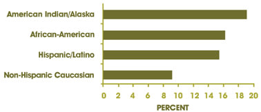 Overall rates are higher for African-Americans, American Indians, some Asian Americans, Native Hawaiians, and other Pacific Islander Americans, and in Hispanics/Latinos.