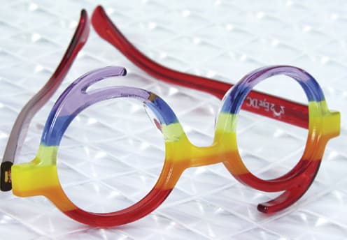 In a time where subtle frames seem to be winning the day, there are still options out there that push creative boundaries. Eye'DC's New Freaky mini collection of attention-grabbing acetate frames twist the typical frame trends in three wacky forms, including inverse triangles; one round and one square lens; and the little numbers. They are available in five colors: black, translucent red, tortoiseshell, black/fishnet, and rainbow. The eyewear breaks new ground with the successive, linear application of different colors to the front. Eye'DC is the creator of this process, invented for temples in 2000 and developed for the fronts of its Stripes sunglass collection in 2002. Here, the rainbow model features a whopping six colors and contrasts translucent with opaque on the top and bottom of the front. For more information, visit the firm's website at www.eye-dc.com.![]() |