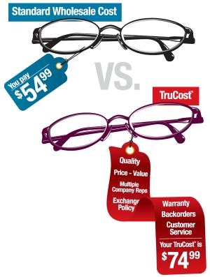 TruCost is the bottom-line cost that takes into account the policies of the vendors with whom you do business. For example, do your vendors consistently have frames on backorder? This inconvenience may actually cost you money in lost patient sales.