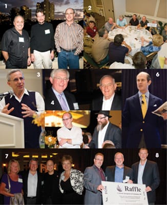 | 1. OLA officers (l to r): Mike Francesconi, Katz & Klein, Kevin Bargman, Hawkins Optical, Jon Jacobs, Superior Optical; 2. A breakfast breakout group discusses employee benefits; 3. REM's Mike Hundert addresses attendees; 4. Former VCA execs Bill Sullivan (l) and John Blocha share a laugh; 5. Santinelli's Gerard Santinelli (l) and Shamir's Hilaire van der Veen at the general session; 6. Fortune Magazine'sGeoff Colvin talks business news in his keynote address; 7. (l to r) Linda and Rick Elias (PPG) and former AOA president Pete Kehoe, OD, and wife Melissa; 8. The Vision Council's Mike Daley (l) and Walman's Marty Bassett present the VisionPAC prize to A&R Optical's John Fried |