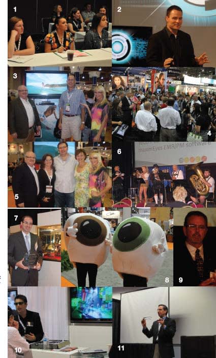 1. A trio of attendees soak up information at a continuing education course 2 Ryan Parker, OD, offers insight on Essilor of America's digital surfacing platform 3. A&A Optical 42-inch HDTV winner Steve Ott of Bluff Vision in Scottsbluff, Neb., with (l) Robert Liener, A&A Optical, and (r) Roxy model, Colleen Brewster 4. Show guests gather around the Shamir booth for a prize drawing 5. The second A&A Optical HDTV winner, Dr. Chris Stanwick with coworkers from Eyecare Associates of Belpre and A&A Optical's Robert Leiner (l) and (r) Roxy model, Colleen Brewster 6. Doctoberfest hit the showfloor with a performance by a traditional German band 7. The Vision Choice Award was presented to Tom Kramer, founder/designer, Teka Eyewear 8. Think About Your Eyes representatives stroll the Vision Expo scene 9. Mike Daley from Think About Your Eyes discusses the vision community 10. Marchon's John Mazziotti demonstrates and details the company's new 3D eyewear 11. Arman Bernardi, PhD, of iCoat Company, explains iCoat's new Sfirex 3D technology during a press conference 12. Executives from ProFit Optix gather to announce new company developments during a press conference 13. Transitions Optical's freshly promoted CEO Dave Cole with Jose Alves at the OLA 14. Inductees into the Optical Laboratories Hall of Fame celebrate 15. Craig Giles, Soderberg Optical, discusses new initiatives with Shamir Insight's Lance Bergeron (r). 16. (From l): Ed Dietz, III and Sandie Connor from Dietz Optical Laboratory and Robert Lee from Younger Optics enjoy the OLA Hall of Fame reception 17. OLA Directors' Choice honoree L. Peter Frieder, of Gentex Corporation, accepted his Directors' Choice award 18. At the Optical Laboratories Association Hall of Fame reception, new OLA president Jonathan Jacobs (l) catches up with The Vision Council's CEO, Ed Greene 19. Donald Goodfriend, Kyle Lepack, Ross Brownlee, Kim Chaveco welcome guests to Safilo's event at the Giorgio Armani store in Las Vegas' Bellagio 20. Safilo's Dick Russo with Doctors Vision Center's Sherrie Rogerson at Armani 21-23. Celebrity visitors to Revolution's booth included: "The Situation" Mike Sorentino from "Jersey Shore;" mixed martial artist Randy Couture; and Emmy Award Winner, Jeremy Piven 24. Marchon's party at the Flamingo drew a happy crowd of revelers 25. Shamir's Andy Boyle and Lance Bergeron at Shamir's press conference 26. Live Eyewear's team with OWA board members Karen Zappia and Amy Spiezio (from center right) at the Optical Women's Association's networking event 27. Steven M. Glassberg, OD from Optical Outlets in Tampa, Fla. (l) is presented an iPad by Bruce Mossman, North Eastern regional manager, during a Shamir Insight booth drawing |