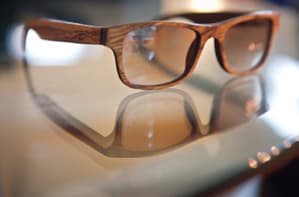 Wood temples and details are organic frame components. Shown above: Ann Sacks style Masa and Oakley Fuel Cell