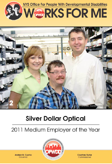 1. New York eyewear designer Robert Marc, seen here with “Law & Order: SVU” actress Stephanie March, a friend and client, was presented with the Visionary Award at the 2011 Accessories Council Excellence (ACE) Awards Gala last month in recognition of his many contributions to the accessories industry 2. Silver Dollar Optical was awarded the 2011 Medium Employer of the Year award at the Works for Me annual event hosted by NYS Office for People with Developmental Disabilities (OPWDD), an organization committed to creating new opportunities and programs for individuals with developmental disabilities to find gainful employment. Here, Silver Dollar Optical owners Nancy and Bill Bliss pose with Ross Bromley, who has been an employee for 13 years |