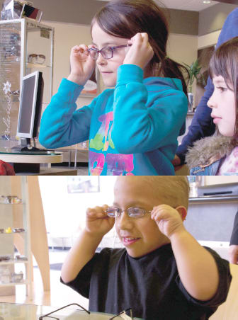 Children are fitted for new glasses at a charity event held to celebrate Standard Optical's centennial anniversary