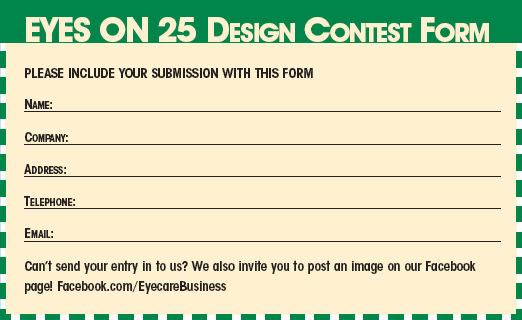 For our 25th anniversary, EB invites you to explore the design side and create a celebratory piece to share with the staff and readers of Eyecare Business. To participate in the Eyes on 25 Design Contest, you can detail a lens with a finish, edge, or other creative treatment, or put together an accessory to enter the contest and be considered for a $500 American Express Gift Card and publication of your project in the special 25th anniversary edition of Eyecare Business.