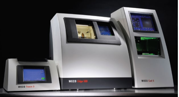 ■ AIT INDUSTRIES, recently named the U.S. distributor for the WECO industrial product line, introduces the WECO 580 Patternless Edging System. It offers integrated drilling, auto blocking, grooving, internal/external safety and multiple beveling programs, continuous 3D mapping, high base curve wrap edging, and camera-assisted blocking with auto recognition. Dimensions: 22.4'' H x 20'' W x 24.2'' D.