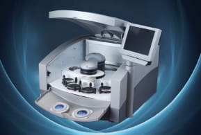 ■ ESSILOR INSTRUMENTS' hallmark in-office edging system, Mr. Blue, is a multi-faceted finishing system that offers full-automated centration, accommodates shapes down to 17mm B-size, and offers a unique hybrid platform for wet and dry processing, including milling and drilling. The milling tool allows high-wrap processing up to 9 base, and edging of specialty shapes and premium AR coating. Dimensions: 27.5'' H x 27.5'' W x 20.5'' D.