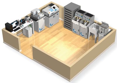 ■ OPTEK's SFS (Small Footprint Surfacing) entry-level lab is capable of processing brand-name lenses across a full range of Rx's and features a value-orientated combination of computerized and manual equipment to work within a budget yet maintain quality. Installation: As few as 13 linear feet.