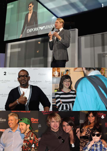 1. Carson Kressely emceeing the Safilo Fashion Show; 2. Randy Jackson stopped by to talk about his eyewear collection from Zyloware; 3. Lisa Loeb promoted her eyewear collection at the Classique Eyewear booth; 4-6. Rex Ryan, Chord Overstreet, and Nicole “Snooki” Polizzi with fans at the Revolution Eyewear booth