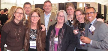 1. Attendees celebrate EB's anniversary; 2. The Vision Council's Ed Greene and Deborah Malakoff-Castor; 3. Essilor of America's Danne Ventura and Rod Tahran, OD; 4. ClearVision Optical reps with EB's Amy Spiezio (l) 5. Shamir Insight's Bruce Mossman (l) with Sam and Michelle Morgenstern of The Optical Shoppe in Princeton, N.J.; 6. EB's (l to r) Dawn Schafer, Rob Verna, Karlen McLean, Ed Meagher, Stephanie De Long, Sue Tarrant, Amy Wauhop, and Mark Durrick