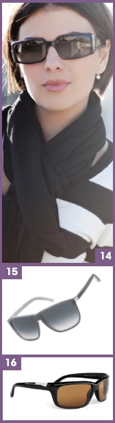 | Andrea Praet, a trend specialist for Stylesight forecasting service, presented fashion trends for 2010. She pointed to two seemingly contradictory directions for spring/ summer: release (exaggerated sunwear) and restraint (authenticity, classics, essentials). “Texture is the new bling.” “Lush tropics is the new stripe.” “Golden brown is the beautification of brown. Copper is key.” The top new trends…round and thick. And key directions: rounded squares, “a 70s look…like an old TV.” Other trends: Oversized rounds. Winged rounds. Milky shades. A “print party.” Extreme blocky geometry. |