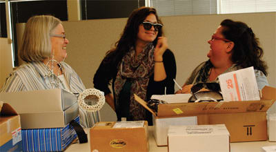 Eyecare Business editors hard at work reviewing entries to the Eyes on 25 design contest