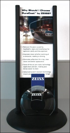 Demo units let patients “see” the difference between AR and non-AR lenses. Photo courtesy of Carl Zeiss Vision