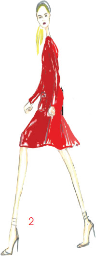 Fashions feature the season's hottest hues. Designers shown on this page: 1. Tracy Reese in French Roast and Tangerine Tango. 2. Bill Blass in Tangerine Tango