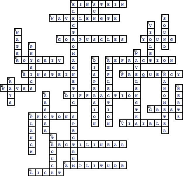 The June issue of EB featured the “Into the Light” crossword puzzle as an accompaniment to the “Light and Vision” article by Jenean Carlton, ABOC, NCLC. Here, we provide the clues and answers to the puzzle.